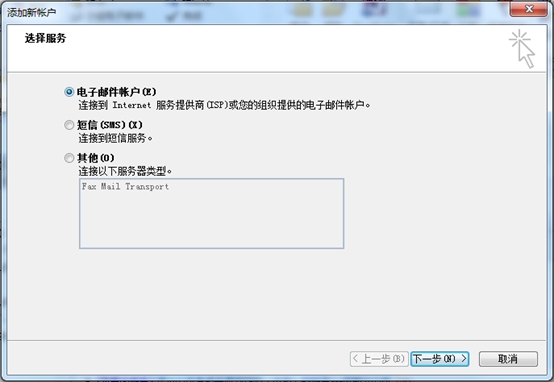 選擇“電子郵件賬戶”,點(diǎn)擊“下一步”。