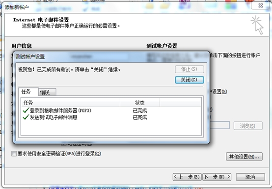點(diǎn)擊“下一步”,系統(tǒng)會(huì)自動(dòng)進(jìn)行檢測(cè),成功后顯示界面如下。然后點(diǎn)擊“關(guān)閉”即可完成設(shè)置。