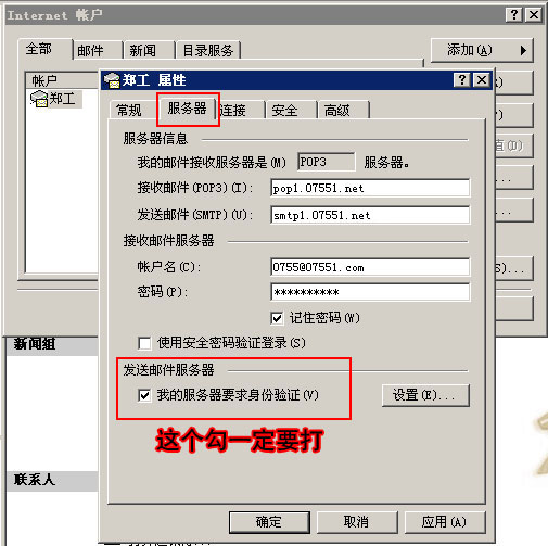 第九步:重點(diǎn):鏈接"服務(wù)器"然后打上"我的服務(wù)器要求身份驗(yàn)證"勾